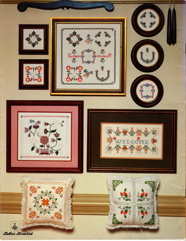 Cross stitch combined with hardanger embroidery. Patterns include The Welcoming Heart Fracture, Holly Wreath Pillow, Applique Quilt Cut-Outs, The Hospitality Sampler, Strawberry Vine Pillow and 19th Century Colonial Flowers.