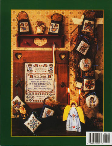 Home Again Christmas-sampler with angels with song books and the verse, "Welcome Home Again Christmas helps us to recall it is the birthday of a blessed babe who came to save us all" (104w x 131h Stitches)